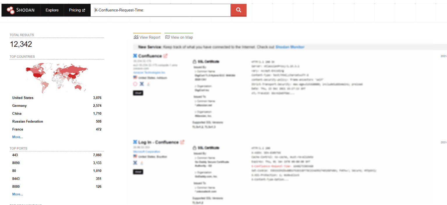 Using the Shodan search engine with the X-Confluence-Request-Time cookie will reveal more potential targets for motivated attackers: