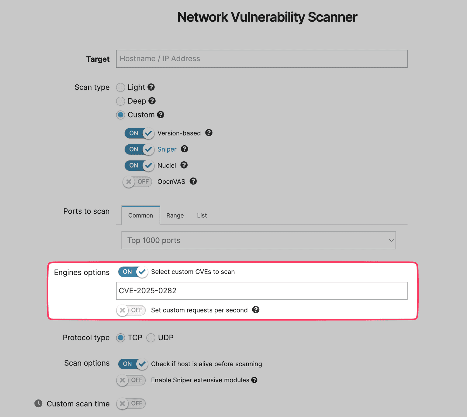 Naturally, we also made sure you can detect CVE-2025-0282 with Pentest-Tools.com, specifically with our Network Vulnerability Scanner. To make sure you get reliable results, our Network Scanner team looks for vulnerable versions and checks if a bad actor can use IFT-TLS anonymously, since these are conditions under which an attacker can exploit CVE-2025-0282.