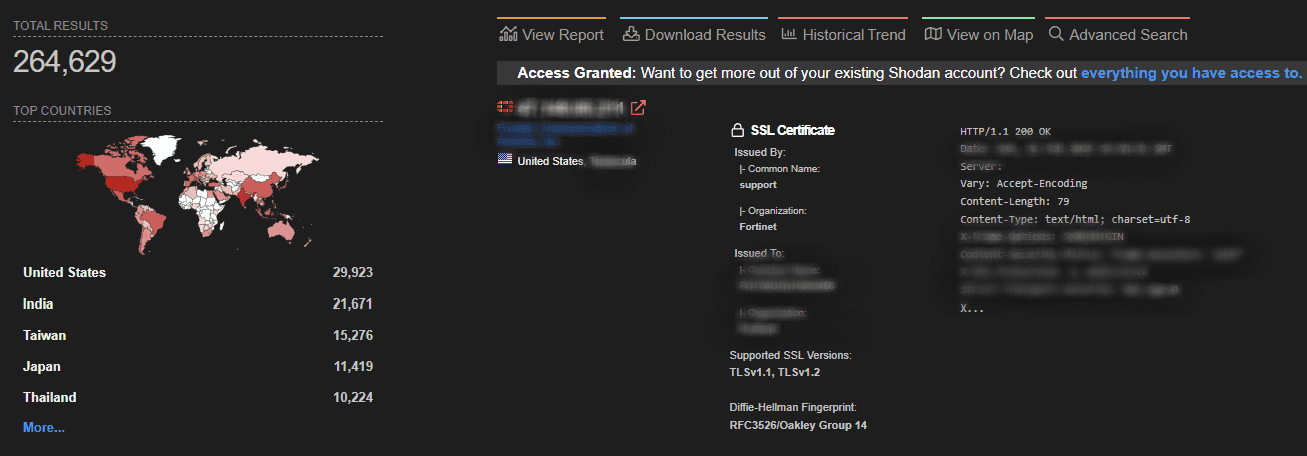 By mid-February, approximately 265,000 Fortinet interfaces were exposed to the internet, according to Shodan.io.